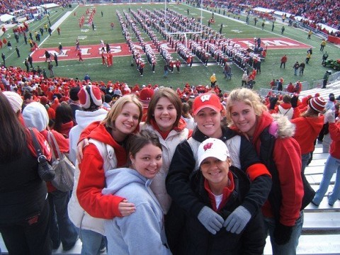Top row from left: Em, Meg, Me, El — Front from left: Jen, Shay at the Badger game!