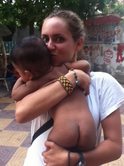 We spend our days playing with the children who aren’t in school and helping teach English and computers to them. Recently someone donated 3 computers to the orphanage, which the kids share playing educational games. This is a real treat for them because other than that, the kids have very few toys: 1 jump rope, crayons, and 1 ball…for 28 kids to share.