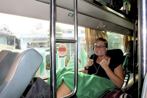 “sleeper” bus on the way to our ministry location of Da Nang, Vietnam.