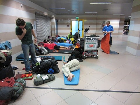 We camped out in the airport for the night with X squad and attempted to sleep on the floor until we could catch our bus.
