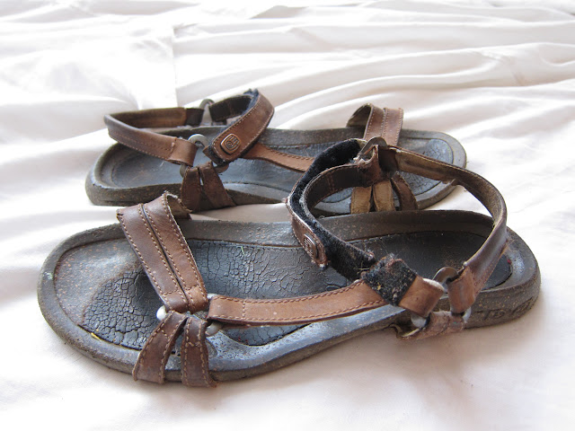 So what do my Tevas say about me? I bought them in the summer of 2009 while working with over-caffeinated middle schoolers in Overland Park. This is what they looked like new: