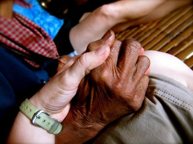 At one point, the Khmer Rouge took all of the solid wood siding off of his house to build rice barns. He replaced his walls with thin bamboo branches, and they still stand like that today. As we left, I noticed a stack of solid wood planks beneath his house. For the past 35 years, he has been collecting wood to recover his walls. He still doesn’t quite have enough.