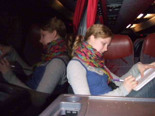 This picture is actually me on a bus (not a train), somewhere between Geneva, Switzerland and Lyon, France. I was supposed to have been on a train then though. We ended up on this bus instead. Long story.