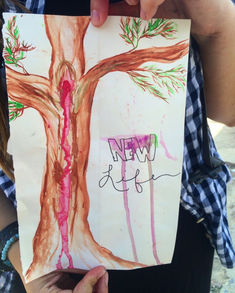 In the moments to come I found myself kneeling on the floor, holding a picture of a tree shaped like a cross explaining the unending limitless love of a father to another bleeding soul. The spirit of the living God in me spoke the words that He wanted His little one to hear and all I had to do was get out of the way.
