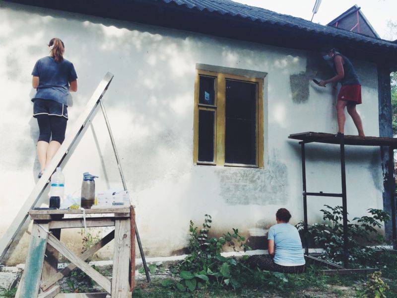 8. Scraping and painting. Ah, the hours I spent working on these tedious jobs. Painting wasn’t actually bad, that was pretty fun even- especially when Abby and I got to be a little creative with the outhouse doors. The scraping, however, left no room for creativity. We worked on a building that needed to have the old cheap (Soviet Union Era) paint removed. And so we spent days scraping away… I can close my eyes and still so clearly remember the scene: me, standing atop a wobbly ladder, surrounded by the constant scritch-scratch sound against the wall, paint dust flying into my face and coating every inch of me. In little ways it was challenging… the monotony, little aches and pains of dust in my eyes and scraped knuckles, and, this might reveal how much of a wimp I am, but it really wore my arms out to go at it for hours on end like that.