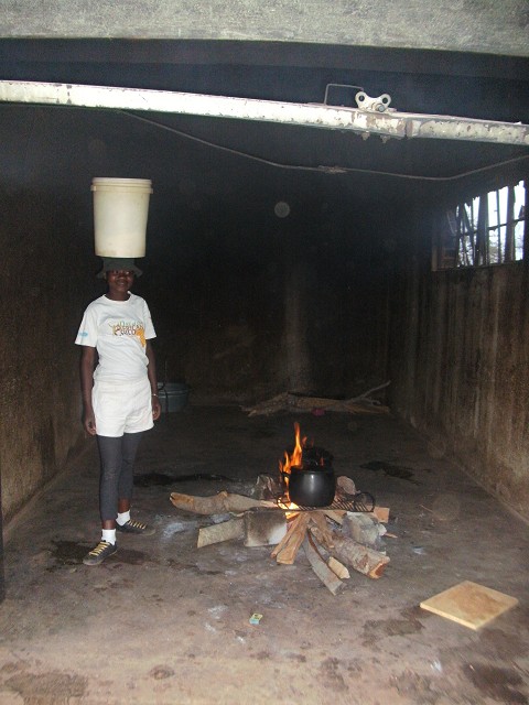 Where women and young girls prepare every meal and tend to the dishes after every person has been served.