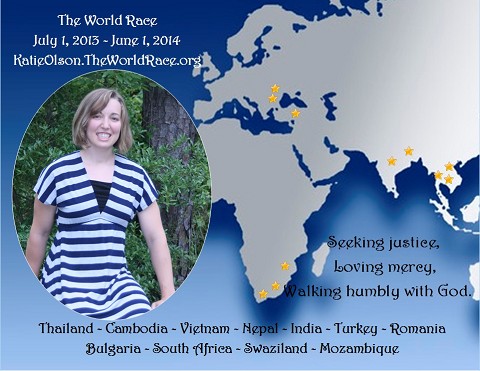 1. Visit my blog at KatieOlson.TheWorldRace.org