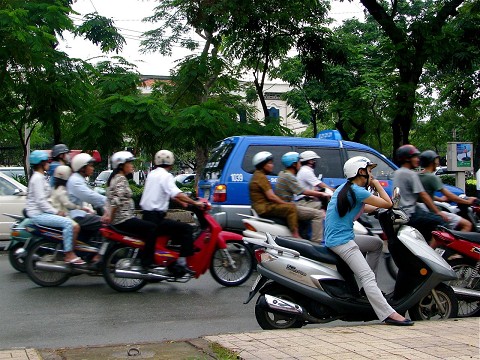 In HCMC, adventure waits at every step–especially when crossing the street, because the primary form of transportation is motorbike. The vast number of them overwhelming the streets is a sight to behold! I do what the Vietnamese do. First, I take a deep breath and wait for a small break in the traffic flow. Stepping into the street and carefully watching to my left while holding my hand out to acknowledge the motorbike drivers, I inch forward between the bikes whizzing by. Slowly, step by step, as I cross, the motorbikes flow around me like water around a rock. Gaining the other side without getting hit is a small victory every time–it’s like winning a real live round of Frogger!