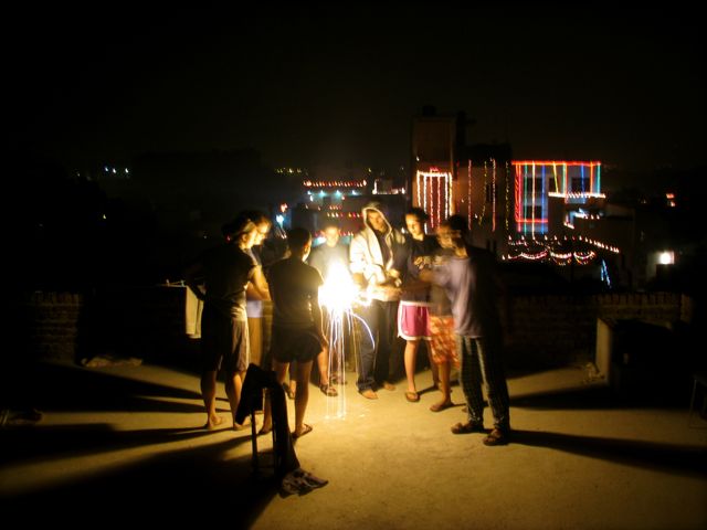 year. We had a little lock-in for safety and watched the fireworks from the roof, enjoying our own sparklers as well. Wikipedia says this about Diwali: