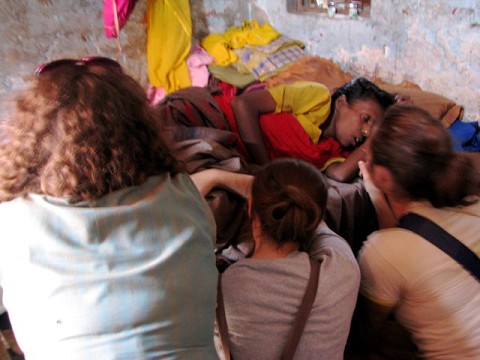 jenny, sarah and kathryn praying during slum ministry