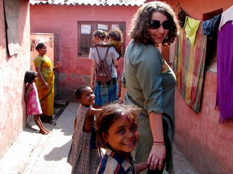 laura is a missionary living in our community. this is taken walking down the alley of houses that is the leper colony.