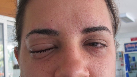 Yep. I turned into Hitch. My right eye was swollen inside and out: eye ball, eye lid, everything. My face itched SO bad and I couldn't stop sneezing much less open the eye to see where I was walking. I tripped over everything…
