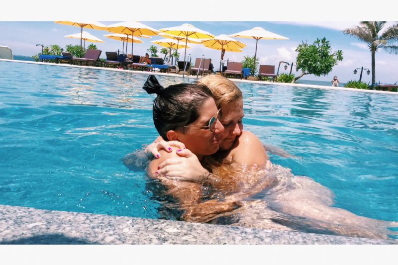 It’s 1:20 in the afternoon at final debrief, and I’m jumping into the resort pool for the third time this morning. The sun feels like a heat lamp against my already dark skin, and the vivid blue of the tiled pool shimmers through my tinted sunglasses. “Grab her legs!” Lindsay screams, upending me the moment my feet hit water. “NO NO NO,” I yell, but my protests are drowned out because I’m, well, drowning. She and Stephen drag me around the pool and my laughter slashes my chances at getting one solid breath, because Kayla Garrison is watching from a safe distance and intoning, “That’s why I wear sunscreen. So that when people hug me, they’ll slip right off.