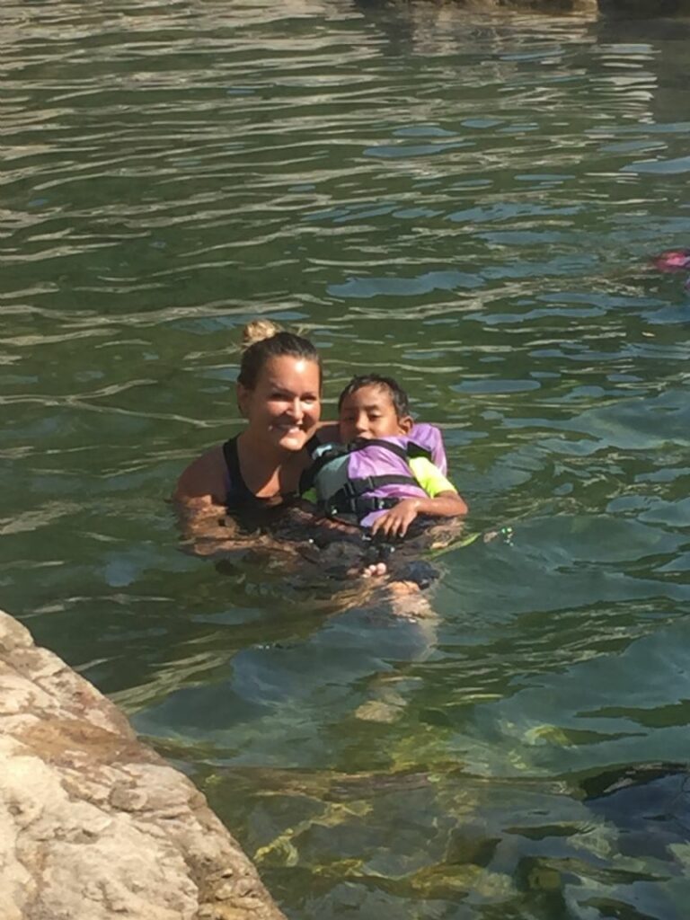 I looked over to Alejandro and saw him sitting on a rock with only his feet in the water. He had a life jacket on and I could see the disappoint in his eyes of him not being able to swim like the other kids. He looked defeated.