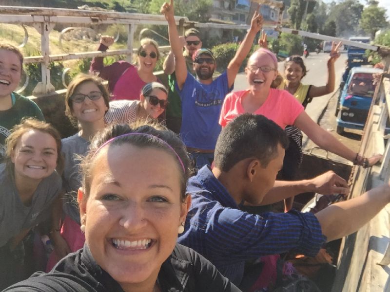Up the “hill” we went, trekking with our backpacks, able to see the Himalayas in the distance. It was beautiful. We ended up at a restaurant where we ate some Nepali doughnuts and bean patties. We restocked our water and continued walking. I decided it was time to test God. “Ok Lord, if you don’t want us to walk any more, send us a truck that will take us up this mountain.” That was all I said and I may have flagged down a couple trucks, but then we heard it. Beep Beep. A truck pulled over and offered us a ride for a free will donation. Yesssssss.
