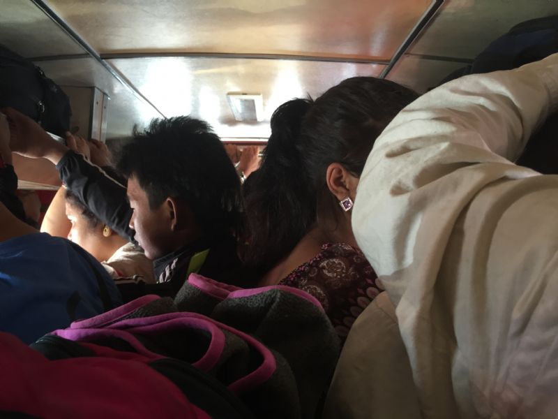 My team had 10 people on it that included 8 World Racers and 2 Ministry Leaders. Our leaders had a general area in mind that we were supposed to head towards, so we decided to jump on some local buses and head up the “hill” (they are mountains to us Americans). Now let me tell you about Nepali buses. Cram.As.Many.People.As.Possible.Into.The.Bus. That’s all you need to know. Remember, there were 10 of us all with backpacks on and this was our view.