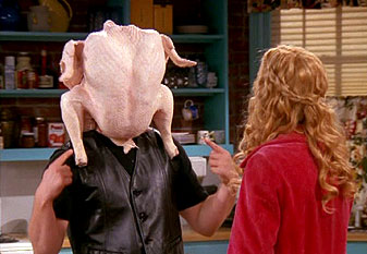 rear end, because haven’t you seen the Friends episode where Joey gets the turkey stuck on his head? The rear end, right? Well, head or rear, it doesn’t really matter, because I would have no idea how to even start preparing a turkey! I think that comes in the manual you get when you become a mom…yes?