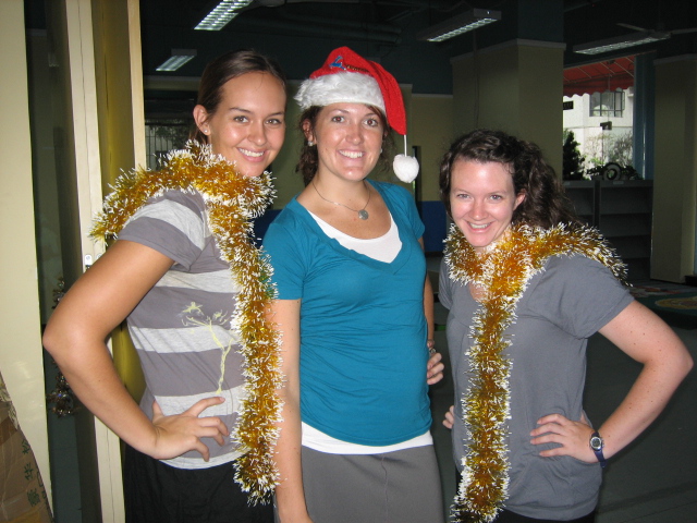 One of our first jobs was to decorate this school for Christmas. We had more fun decorating ourselves! 🙂