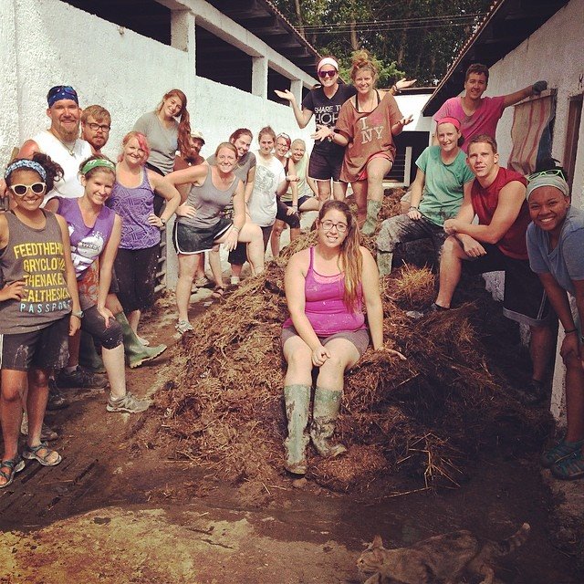 We literally spent 8 hours moving pig and chicken poop. Literally thousands of pounds of poop. Five trailers. This process included: using pitch forks to shovel up what we could, taking full wheelbarrels and dumping them into a huge mound, then transferring the mound onto a trailer to be taken to a dump. Not only this, but we also had a team to manually mix concrete before it was ready to be used in some of the pig stalls. I have never spent so many hours shoveling in my entire life.