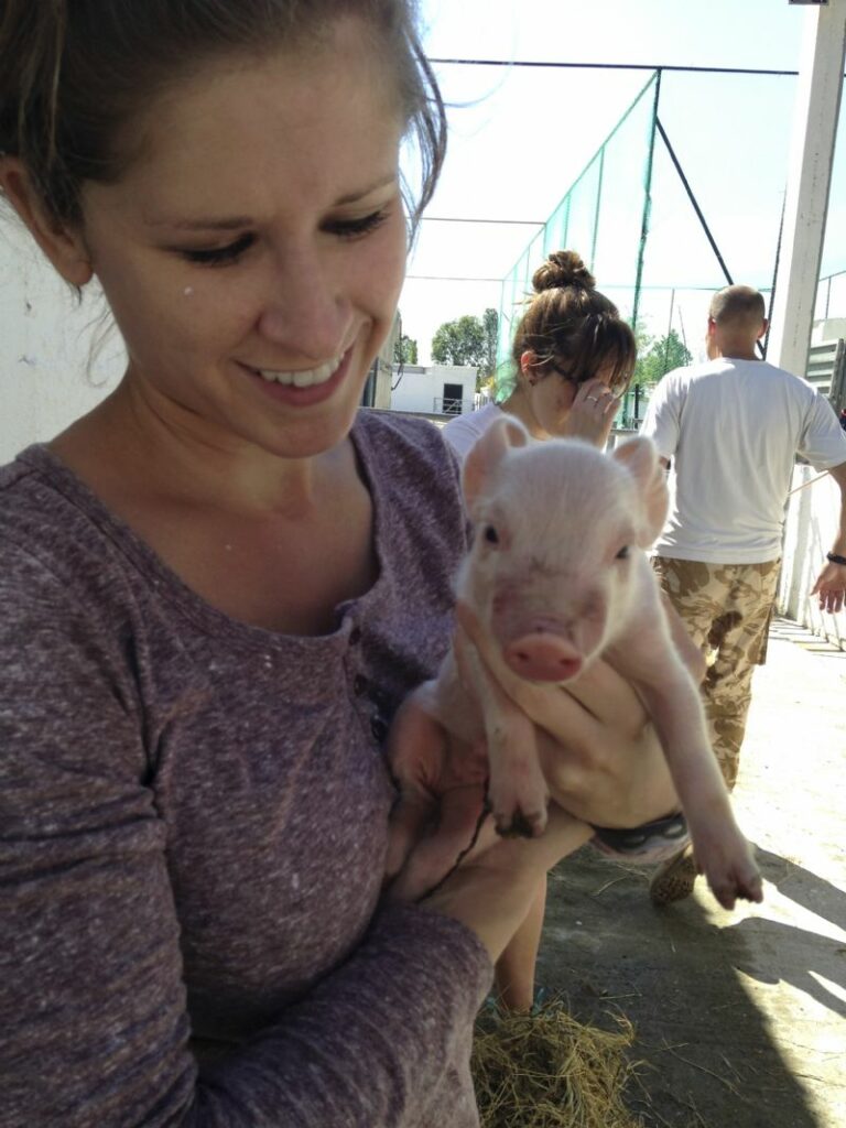 During my first week at the camp, I volunteered to whitewash multiple pig stalls. Some of the stalls still had pigs IN them, which wasn’t so bad; I did get to meet some piglets.