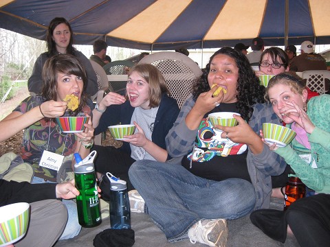 On Africa day, the boys sat at the table and the girls sat on the ground. We had to serve them, being careful never to stand higher than their shoulders (which meant that we had to hunch over the whole time we served them). We also ate more ugali (which is basically some sort of corn meal mush) than I would think to be possible.