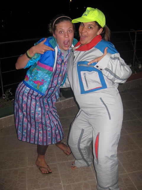 When we first arrived to Casa Shalom we had the ambitious task of arranging hundreds of boxes in donations. Later, these donations will be sold to support the ministry here. Needless to say – fashion shows were necessary. I am now the proud owner of a Goodyear jumpsuit.