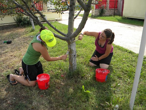 Things at Casa Shalom have been going swimmingly – we have been doing a variety of work around Bucharest! I am picking up new skills I never tought I would. Example: white-washing apple trees. (So the bugs can’t NOM NOM NOM NOM the delicious apples!)