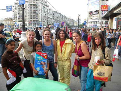 The girls were sooo excited! One of the girls, Denisa, grabbed my hand and kept saying “diapers.” I ended up taking her to the store and buying her diapers and a baby bottle and shampoo and various other personal care items that she pointed out. I was wondering why she would need diapers. As I was saying goodbye to her at the bus stop, and I found a woman who could translate for me. The translator asked me, “Do you know who this girl is? She is a Gypsy. Why would you buy her all these things? Do you even know what she is going to do with it?”