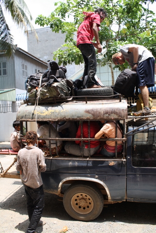 ong Cham was a definite stretch out of our comfort zone. All I remember from that morning were the sounds of laughter as the “Cambodian taxi” pulled up and Billy said, “I think that’s our ride….yep that’s our ride”. The Taxi was already loaded down, we couldn’t imagine adding any more passengers. Not to mention when we went down to load our stuff the hood of the truck was up, so not really instilling in us a whole lot of confidence at this point. Yet we have been in similar situations and God has provided for us INCREDIBLY!