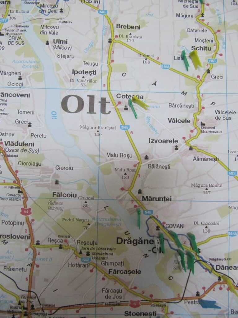 This is a map of Olt, the county we are in. One of the green flags is pinning Draganesti, our town.