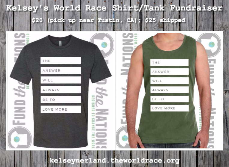 I still have $4,600 to fundraise to be fully funded, and I leave for the World Race in 20 DAYS! Help me meet my goal 🙂