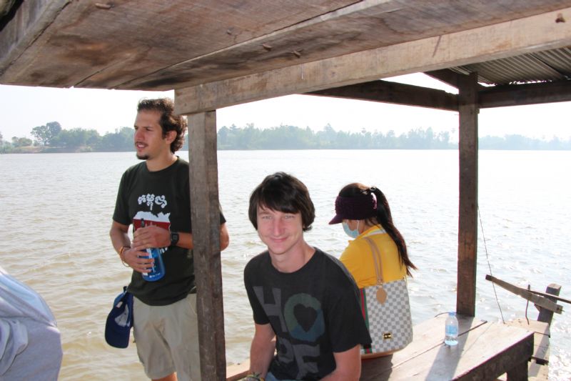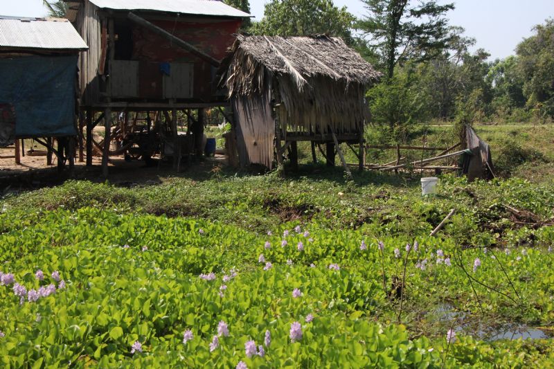 "Would you like to meet people in the village?" We all simultaneously say "Yes, definitely" so as we are walking he starts to wave at a shirtless man sitting on a thatched wooden platform under a palm tree leaf covering. He is by far one of the most muscular Cambodian men I've seen the whole month.