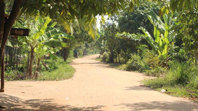 We start walking on the main dirt path and only a few minutes later we see Sula's home to the right with a Buddhist spirit house on the corner. It's a miniature temple on top of a pillar. "Are you Christian ?" He said "Yes, my grandmother is still Buddhist though like most of the elderly here so we don't take it down for her sake. Majority of people on this island are Christian though."
