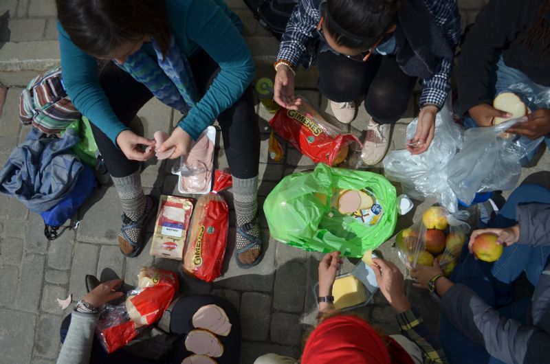 ^ Our team making sandwiches to hand out to those who were hungry in downtown Riga