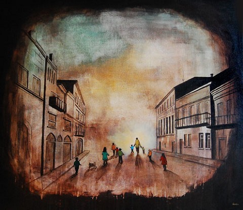 One of the first images that came to mind after I met the children at Oaza’s Shalom house was an image of Jesus leading them down the Roads of Buzac, Romania towards a magnificent light… the light of the Lord. As some of you may know, white light is made up of all colors, so I chose to paint each of their shirts a different color making up the ‘light’. This represents how these children make up God’s kingdom. When I gave this painting to the children, it was obvious what verse I should put along with it.