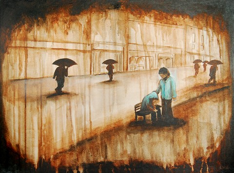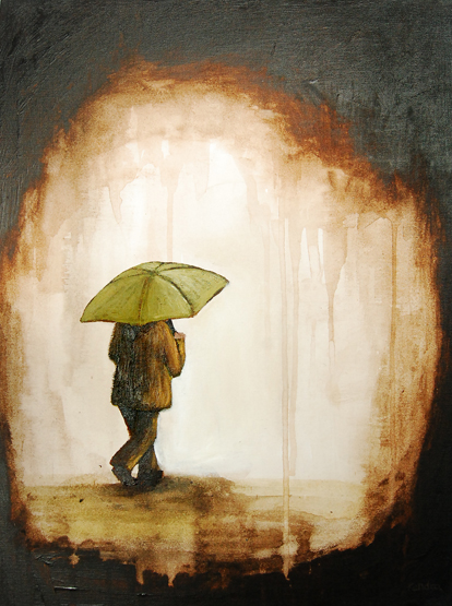 Ok, so the Evangelism never really panned out for me, so I decided one day to find an art store and start doing some paintings. The first painting came from my frustration of really feeling defeated by trying to Evangelize to people. This girl represents me. She is playing music on her guitar, but feels sad because she feels she’s supposed to be doing more. I felt that, by painting in Ireland, in a way, I was hiding behind what I already knew how to do. I felt that I was, at all costs, avoiding the actual ministry we were called to Ireland to do. I can’t say that picking up a paintbrush wasn’t refreshing and comfortable. It made me feel normal after a few weeks of only showering every third day, being cold and wet most of the time, and being frustrated at my lack of ability to tell people about Jesus.