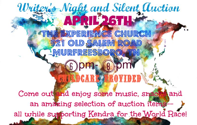 APRIL 26TH– Writer’s Night and Silent Auction in Murfreesboro!!!