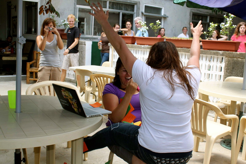 While I was trying to make a Skype call to my parents, Katherine, a squad mate, came over randomly sitting on me and throwing notes in the air.