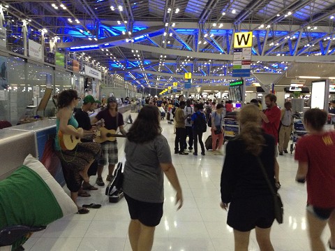 After that, we got back in buses to head to the Bangkok airport. We got there with not much time to spare and I was able to snag my last 10 minutes of internet up until this point as well as break out the guitars for a few minutes to have a good old fashioned jam in the airport