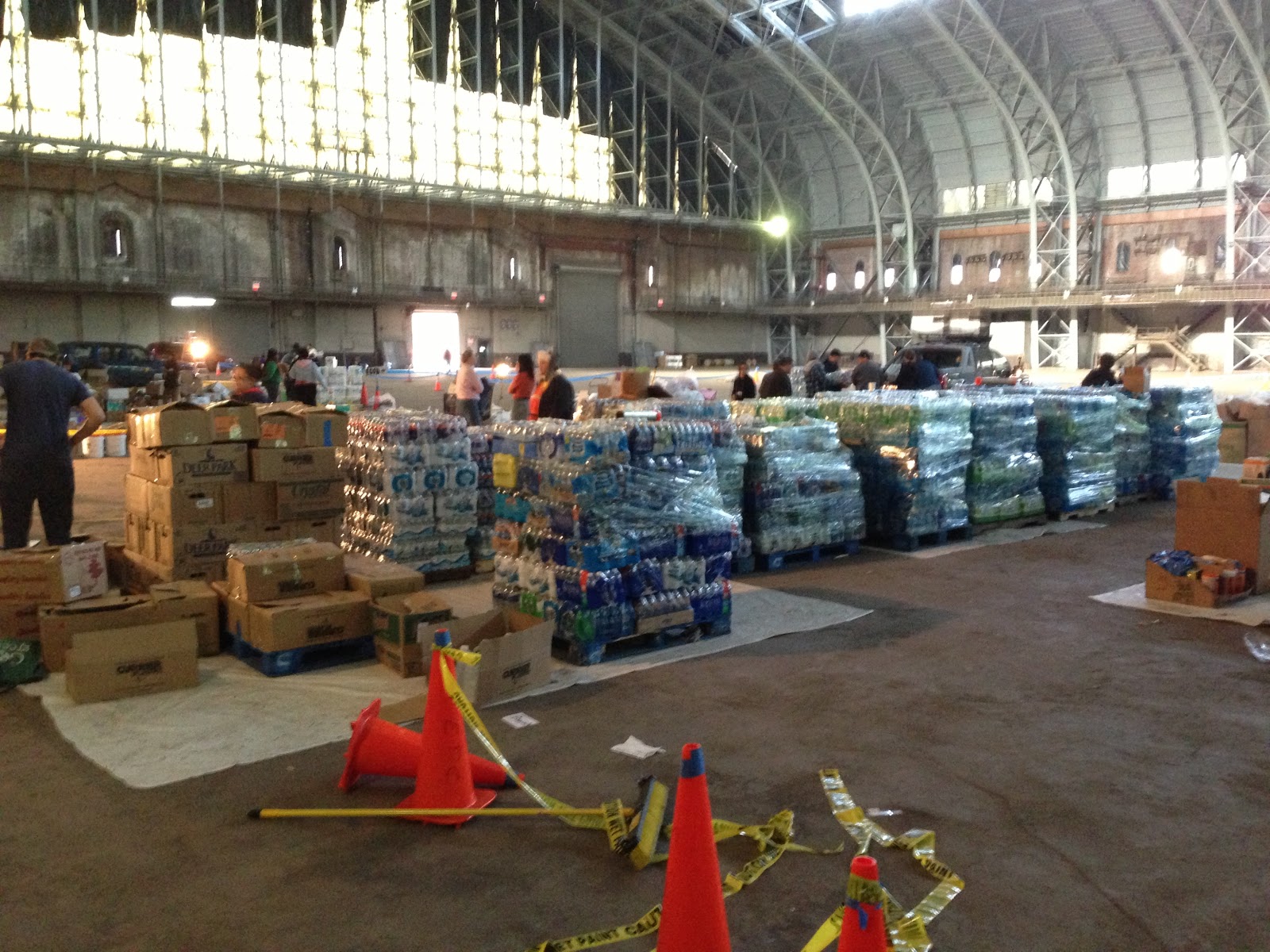 We were off! Kehl (resident of the apartment) led us to the subway and over to the Kingsbridge Armory in the Bronx, which is the nations largest armory. We were signed in and given name tags for security purposes. The armory was being guarded by the U.S. National Guard and had troops throughout the building. Inside this massive dome were supplies that had to go out to some of the areas in need along the coast. We helped to unload trucks and trailers full of supplies from both church's throughout the area (NY, PA) as well as folks in off the streets donating what they could. What a blessing!