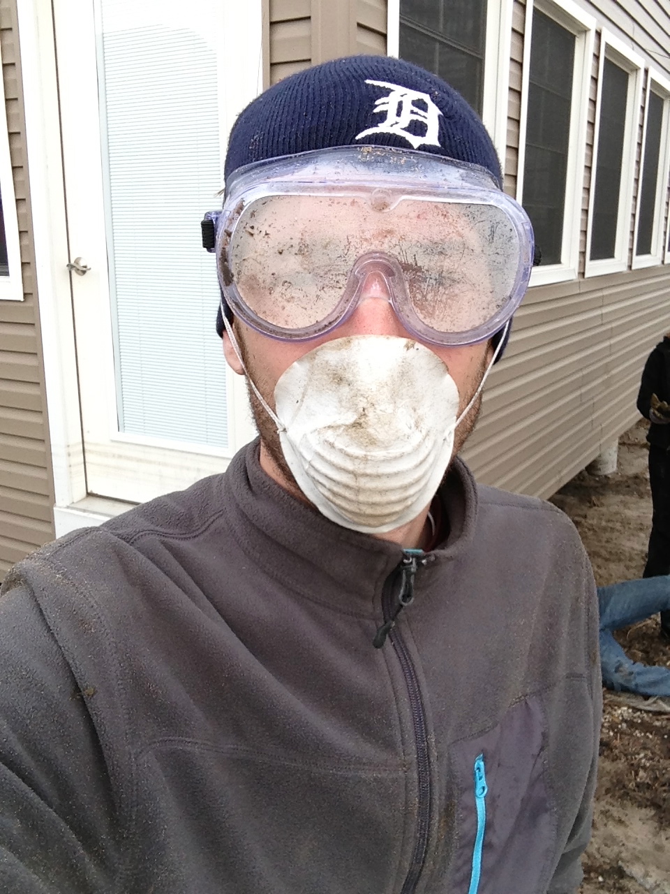We got back to the main road and went to the Habitat for Humanity and offered our services to them. They quickly gathered us supplies and our information and then we were off. They took us a few blocks down to help with a homeowner who needed help removing the insulation from the crawl space under his home. This was a pretty challenging job and with the wind and cold ocean air, along with the dirt and emotional ups and downs, it was a hard afternoon.