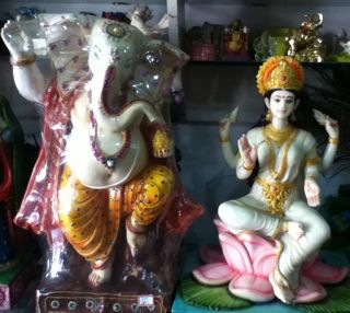 • images or large statues of gods/gurus are displayed in public places, businesses, and homes