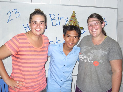 On February 13th, I coincidently (or maybe not so coincidently) asked our student So Kunn when his birthday was. It was shocked when he responded 15 February 1990.  I even made him write it down because I was so surprised, Am like are you sure? Haha!  Are you kidding me? I happened to ask him two days before his birthday, but here’s the catch, he told me as nonchalantly as telling me tomorrow is Sunday, or it’s sunny outside. In Cambodia people don’t celebrate their birthdays, so really it isn’t a big deal to him. So Kunn told me that birthday parties are for rich people and that he had never had one.  I was freaking out inside because that was about to change.  We were going to throw him his very first birthday party.