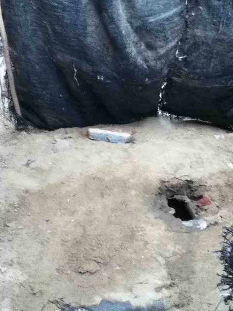 time for the bucket. Yep, there is a spare bucket filled with water for the