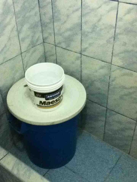 time for the bucket. Yep, there is a spare bucket filled with water for the