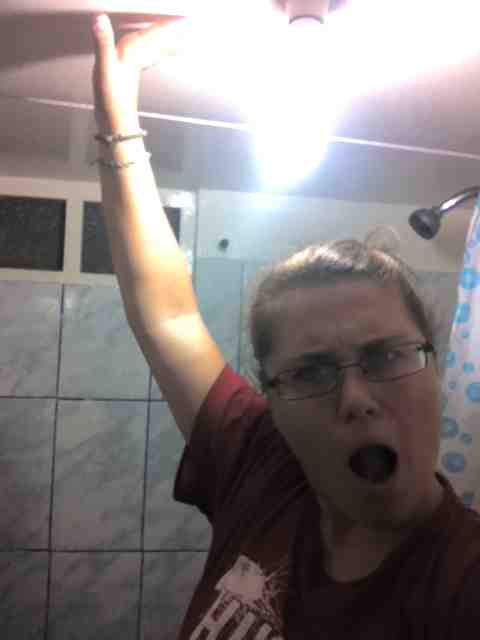 every time I step out of the shower I hit my head on the light bulb. Anyone