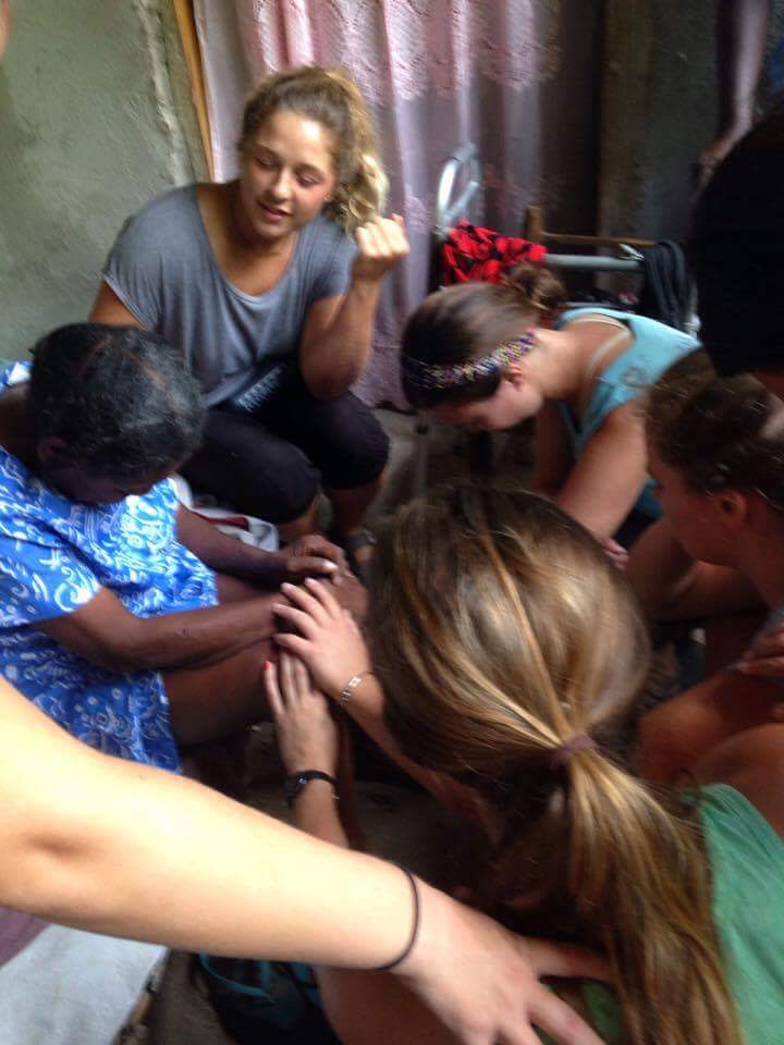 Our translators have arrived so we leave for our 30 minute walk to the neighborhood where we will do ministry for the day. Once there, we split into three groups: two groups do “street care” (evangelizing and praying for people in the neighborhood) and one group stays to visit with the women at the Matthew 25 house (a home where four elderly women live and are taken care of)
