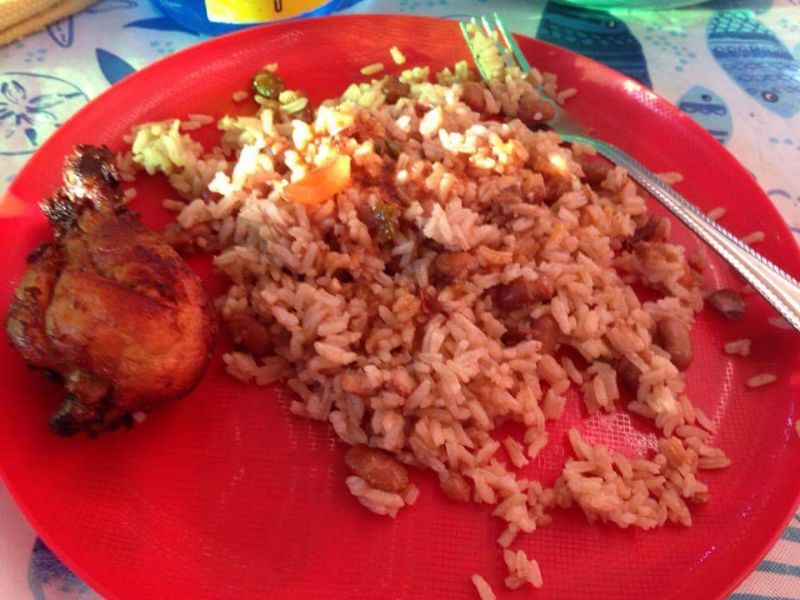 Some of the students from the Bible study walk with us back home. We have a chicken drum stick with rice and beans for dinner.