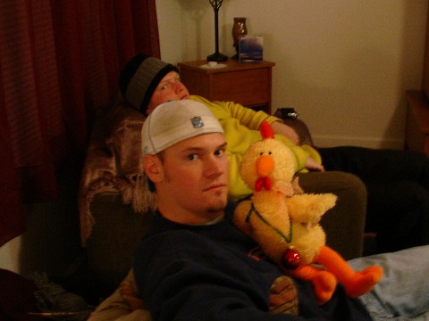 an ornament was placed around his neck & the Chicken that was