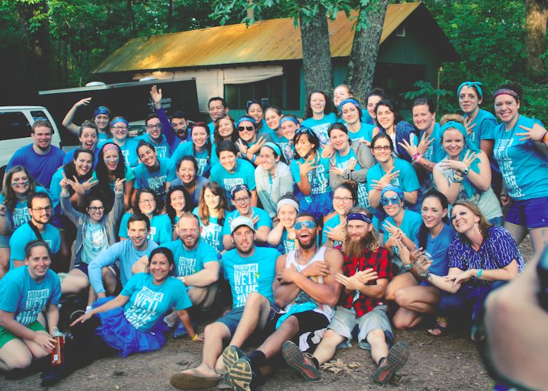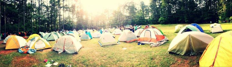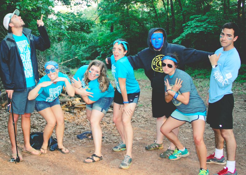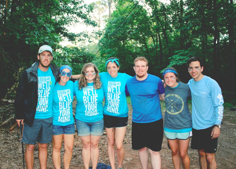 After a 15.5 hour road trip down to White, GA with two other fellow racers, we unloaded and set up our little pop tents on a field of a tent town of about 200 other young adults. All racers had been divided up into color coordinated D, E, F, G Squads depending on the world route chosen. Introductions were made, the awkward “online-dating-first-time-meeting-you-in-real-life-after-months-of-facebook-chatting” phase ended and the first night of settling in began with a rough start. Due to the fact that my squad, E squad, had originally had 84 people on it (compared to the other 3 squads averaging 47) there needed to be some rearranging. Weeks prior to camp we were approached and asked of 16 girls and 7 guys to switch routes/squads. While most of the rearranging took place before camp, the first night the Adventures staff gathered our squad and said they still needed 8 more girls to switch. You can imagine the disappointment. We sat in silence and prayed. Over the course of what felt like hours, 8 girls walked out of the room with a deeper understanding of wildly trusting God in the unknown. Our squad adopted the three finger salute from the Hunger Games as we said goodbye and prayed over the girls transition.